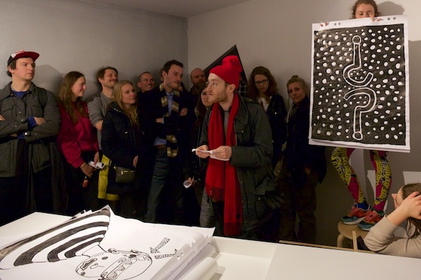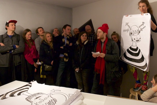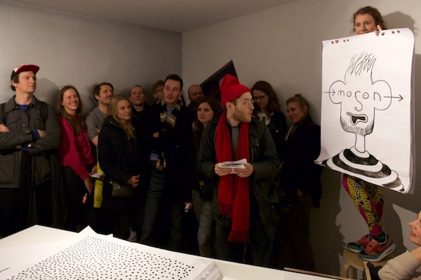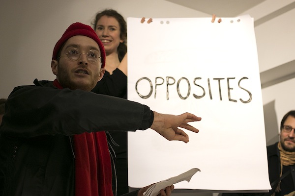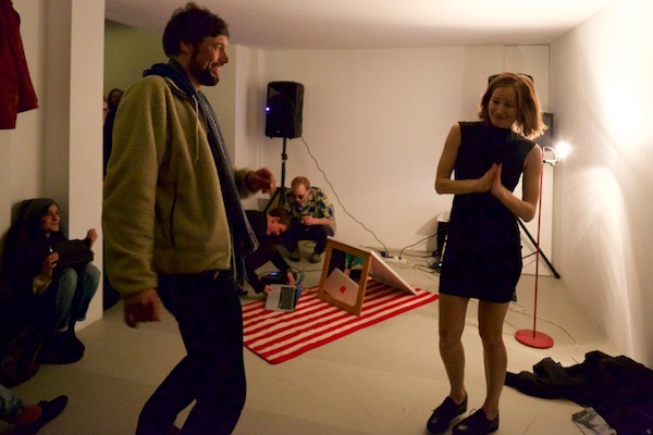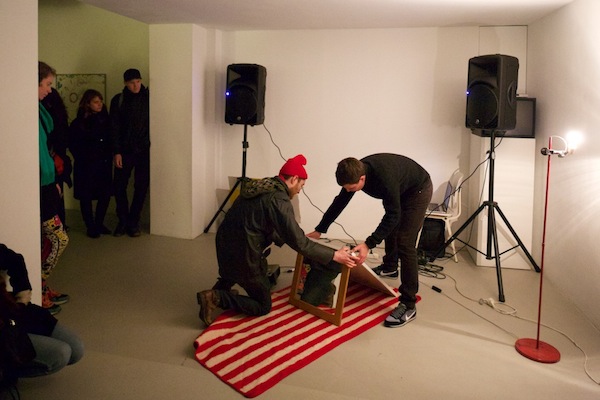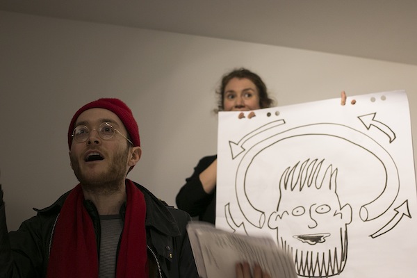 Karaoke Police: Oxymoron / 2015 / Performance in collaboration with: Monika Lipšic, Marija Olšauskaitė, and Jurgis Paškevičius; featuring: Jokūbas Čižikas, Gunnar Gunnsteinsson, Brynjar Helgason, and Olga Tsvetkova / Presented at Kunstverein during SPF15, Amsterdam (NL)